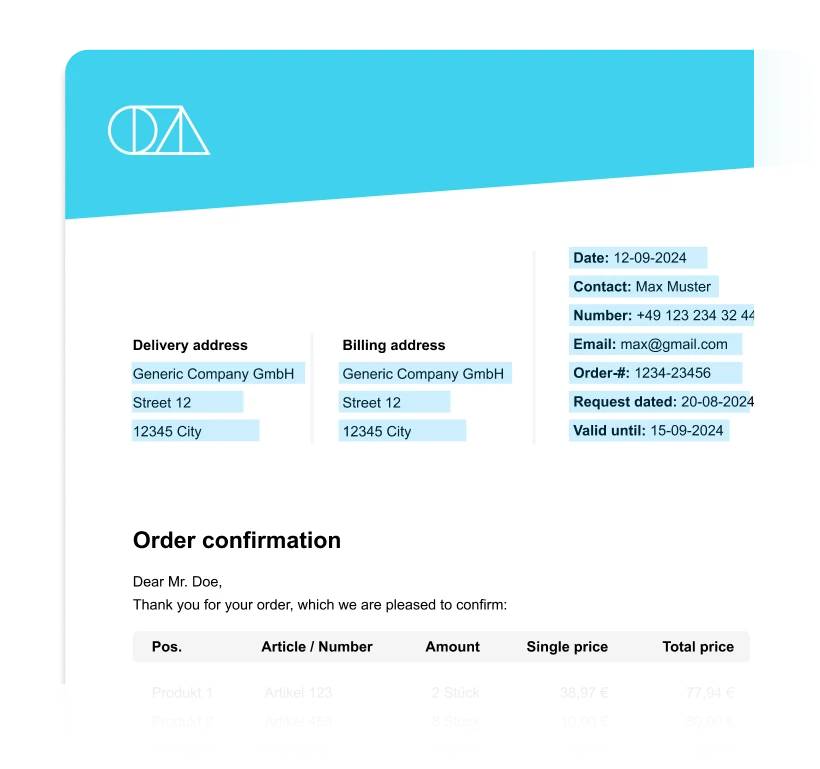 Even today, order data is often manually typed and fed into ERP systems. This is an error-prone and expensive process and should therefore be digitized.